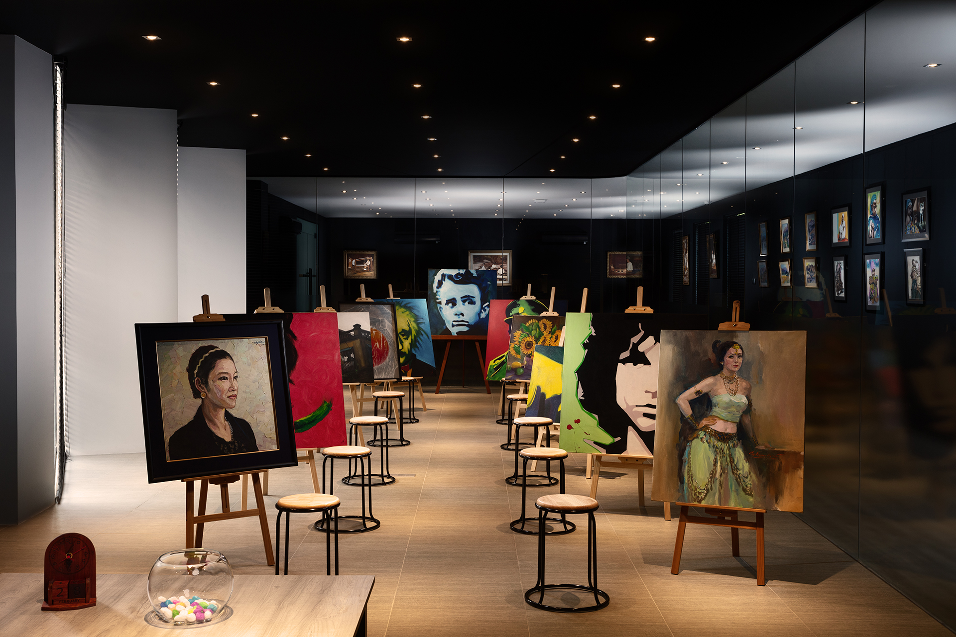 The first floor serves as the gallery’s working hub, complete with a cozy and tastefully furnished living room, a secure collection room, a private office, a wide balcony filled with natural light, and a fully functional art studio where inspiration takes shape.